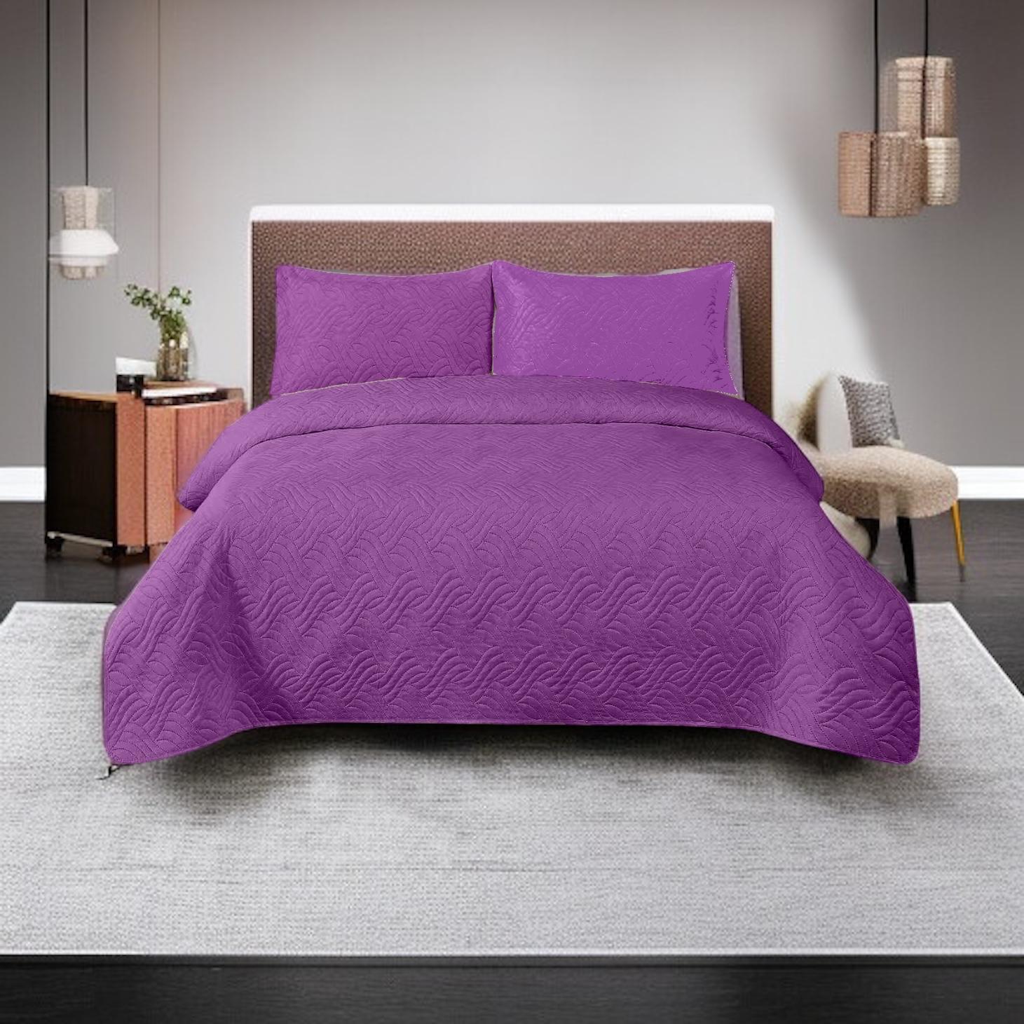 Cuvertură de pat din catifea 200×220 cm + 2 fețe de pernă Mov