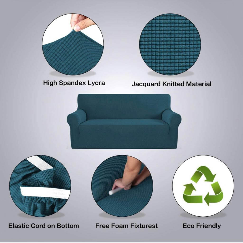 Husa pentru Canapea 3 Locuri, Turcuaz este alegerea perfectă pentru a combina utilul cu plăcutul – protejează canapeaua și, în același timp, schimbă rapid designul camerei tale.