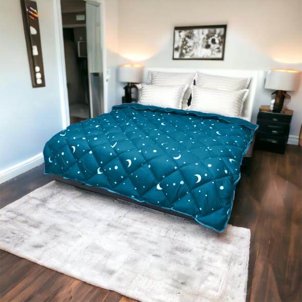 Pilota de Iarnă Turcoaz cu Steluțe este creată pentru a oferi un confort superior și o izolație termică excelentă în sezonul rece. Fabricată din microfibră super soft și umplutură din puf siliconizat antialergic, această pilotă îmbină eleganța cu funcționalitatea, fiind alegerea ideală pentru un somn liniștit și călduros.