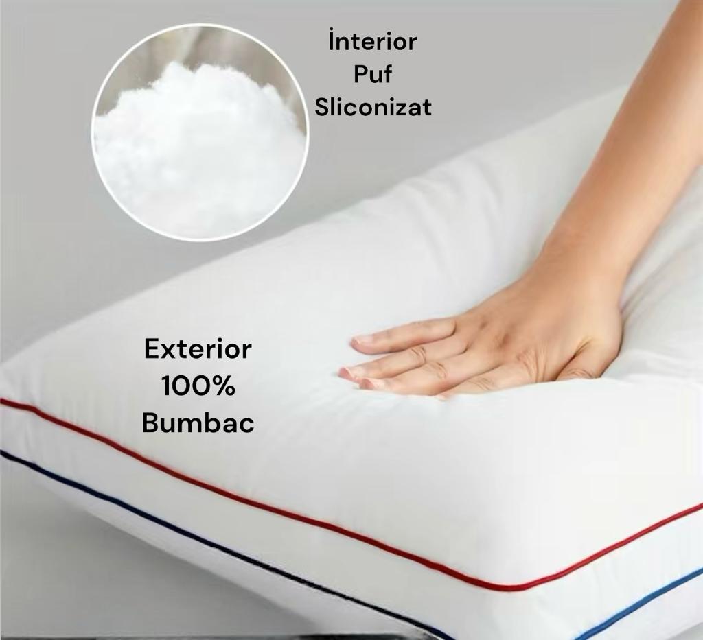 - Confort și Suport: Umplutura din fibre de poliester siliconizate oferă un suport excelent pentru cap și gât, adaptându-se perfect conturului acestora. Pernele sunt concepute pentru a oferi un echilibru ideal între fermitate și moliciune, contribuind la un somn odihnitor și relaxant.