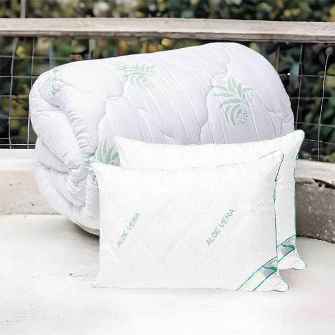 Setul Pilotă + 2 Perne Aloe Vera este alegerea perfectă pentru cei care caută un produs premium, antialergic și ușor de întreținut, ce aduce un plus de confort și igienă dormitorului.