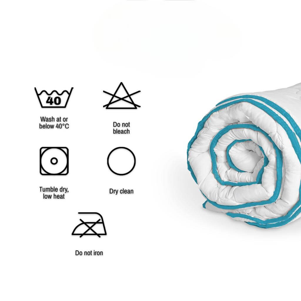 - Umplutură: Umplutura este realizată din puf siliconic, cu o densitate de 350 g/mp, asigurând o izolație termică excelentă. Pilota este ușoară și pufoasă, oferind un confort maxim în timpul somnului.